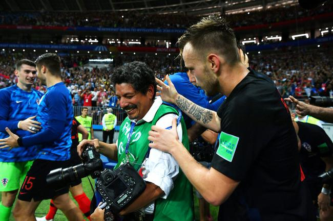 摄影师被狂喜庆祝的克罗地亚队员压倒